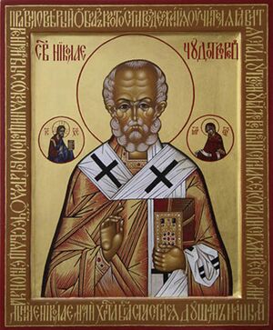 - Der mit Abstand bekannteste Namensträger ist jedoch der heilige Nikolaus, auf den der moderne Weihnachtsmann zurückgeht. 'Nikolaus von Myra' (* zwischen 270 und 286 in Patara; † 6. Dezember 326, 345, 351 oder 365), wirkte in der ersten Hälfte des 4. Jahrhunderts als griechischer Bischof von Myra (Lykien) in Kleinasien, damals Teil des Römischen Reichs, später des Byzantinischen Reichs.