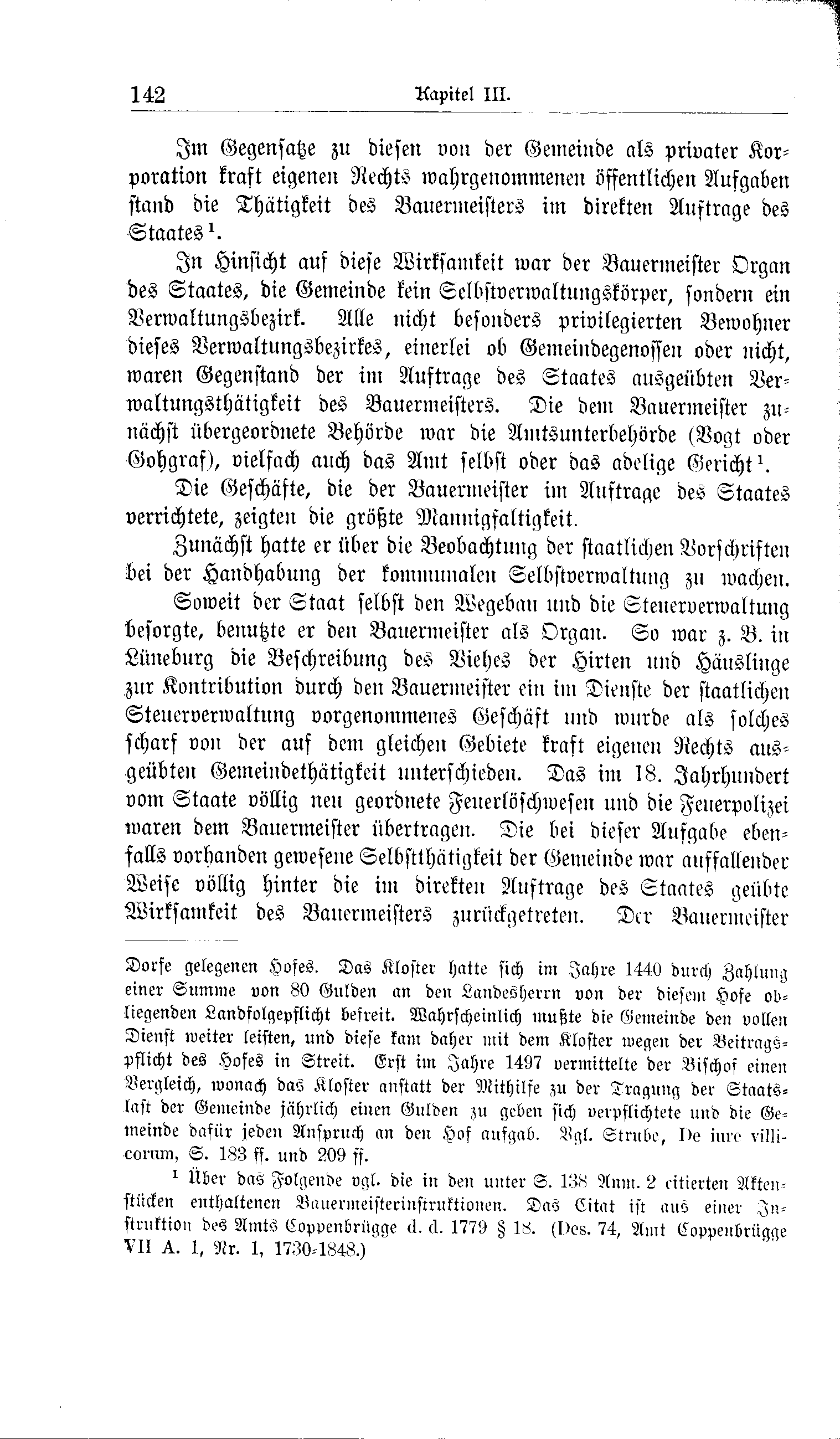 Soweit der Staat selbst den Wegebau und die Steuerverwaltung besorgte, benutzte er den Vanermeister als Organ. So war z. V. in Lüneburg die Beschreibung des Viehes der Hirten und Häuslinge Zur Kontribution durch den Bauermeister ein in: Dienste der staatlichen Steuerverwaltung vorgenommenes Geschäft und wurde als solches fcharf von der auf dem gleichen Gebiete kraft eigenen Rechts ausgeübten Gemeindethätigkeit unterschieden. Das im 18. Jahrhundert vom Staate völlig neu geordnete Feuerlöschwesen und die Feuerpolizei waren dem Bauermeister übertragen. Die bei dieser Aufgabe ebenfalls vorhanden gewesene Selbstlhätigkeit der Gemeinde war auffallender Weise völlig hinter die im direkten Auftrage des Staates geübte Wirksamkeit des Bauermeisters zurückgetreten. Der Bauermeister