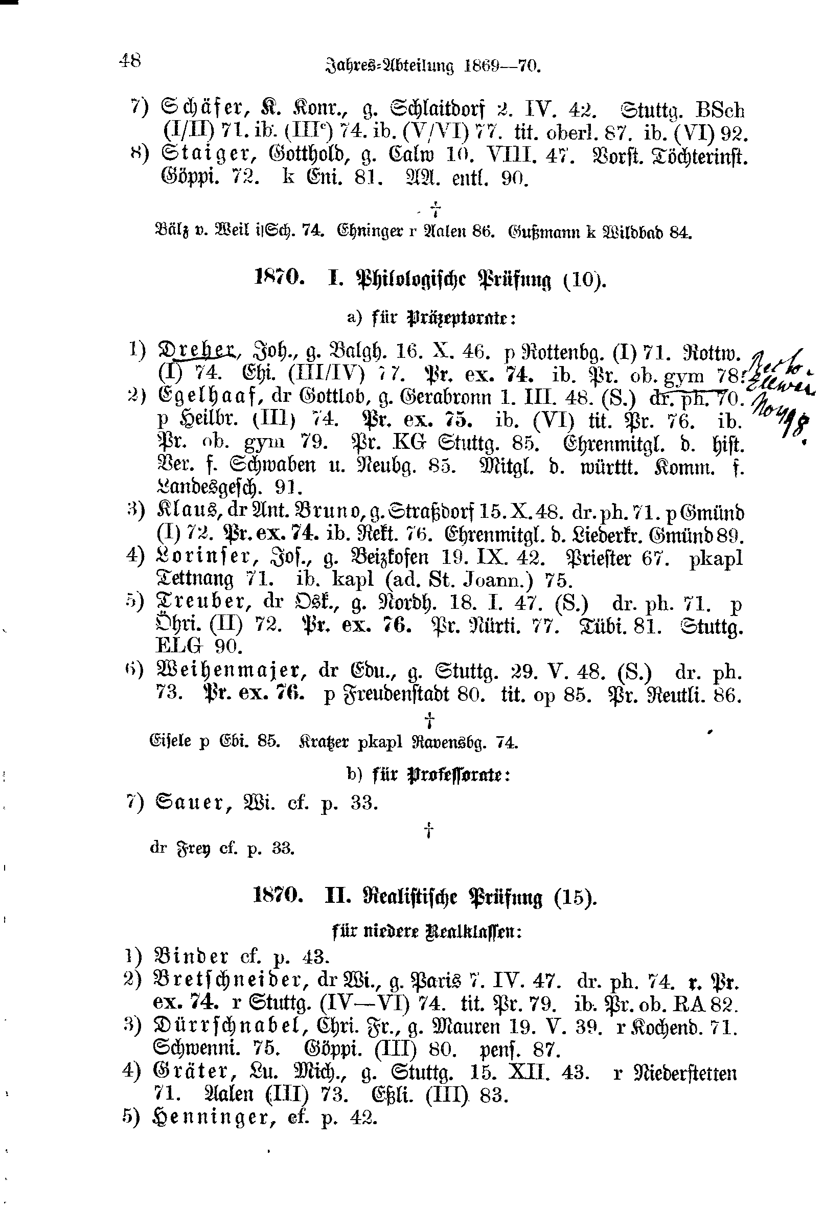 1. Dreher, Joh., g. Balgh. 16. X. 46. p Rottenbg. (I) 71. Rottw. (I) 74. Ehi. (III/IV) 77. Pr. ex. 74.[1] ib. Pr. ob. gym 78.