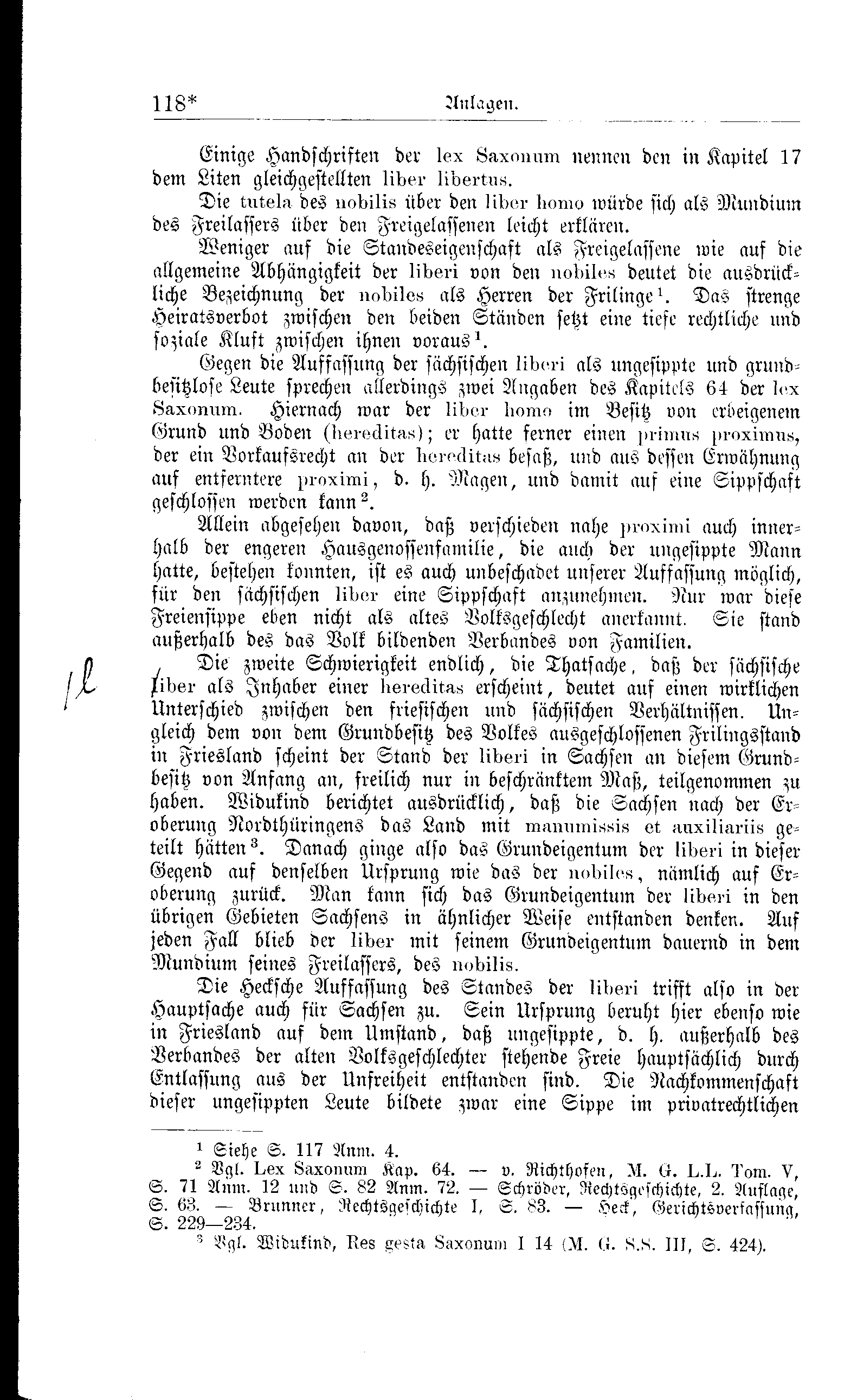Die Hecksche Auffassung des Standes der lidsi-i trifft also in der Hauptsache auch für Sachsen zu. Sein Ursprung beruht hier ebenso wie in Friesland auf dem Umstand, daß ungesippte, d. h. außerhalb des Verbandes der alten Volksgeschlechter stehende Freie hauptsächlich durch Entlassung aus der Unfreiheit entstanden sind. Die Nachkommenschaft dieser ungesippten Leute bildete zwar eine Sippe im pnvatrechtlichen