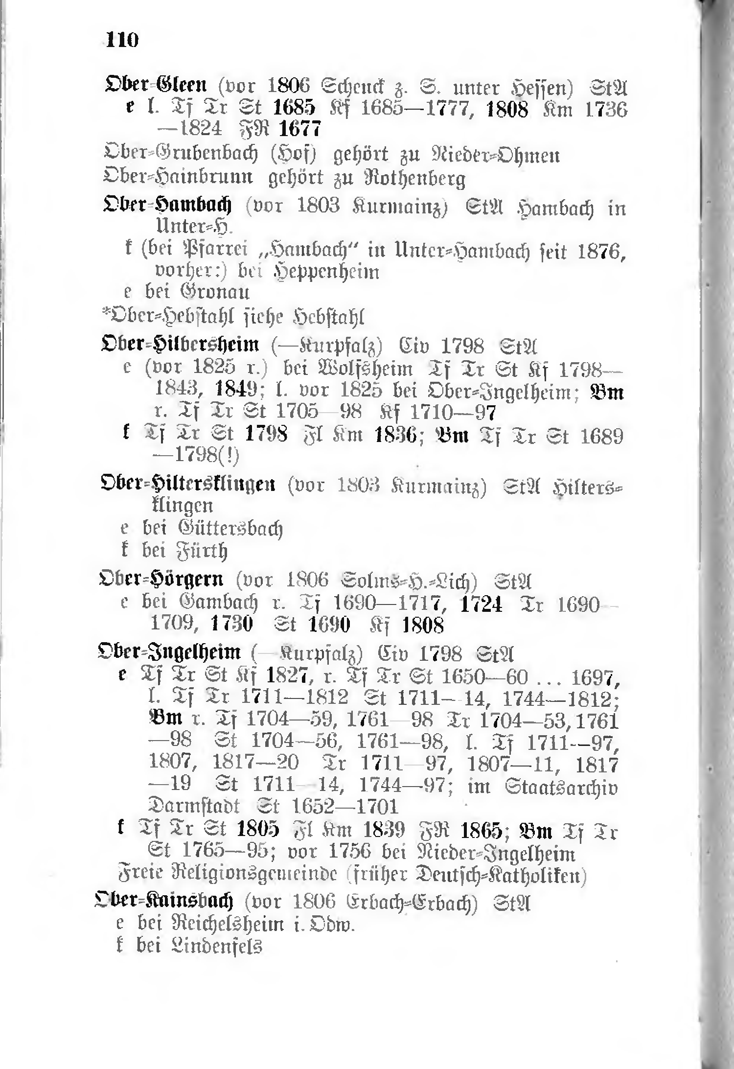 - e (vor 1825 r.) bei Wolfsheim Tf Tr St Kf 1798–1843, 1849; l. vor 1825 bei Ober-Ingelheim; Bm r. Tf Tr St 1705–98 Kf 1710–97