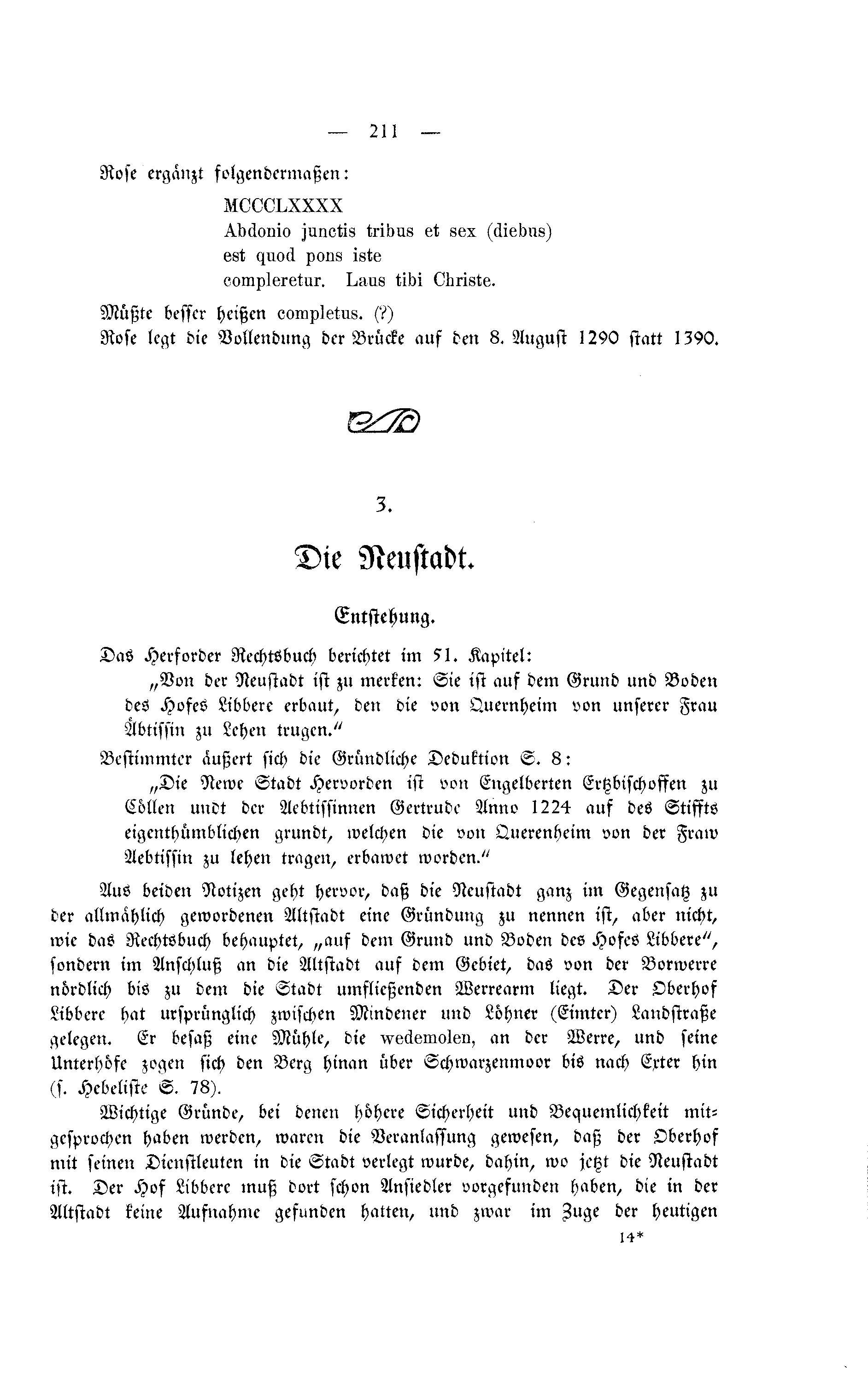 - „Von der Neustadt ist zu merken: Sie ist auf dem Grund und Boden des Hofes Libbere erbaut, den die von Quernheim von unserer Frau Äbtissin zu Lehen trugen.“
