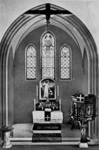 Alte Ansicht des Altarraumes der Niddener Kirche