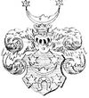 • Schild: B. mit w. querliegendem Halbmond, über jeder Spitze und oben und unten von je zwei g. Sternen begleitet und unten in der Mitte ein w. Hufeisen.