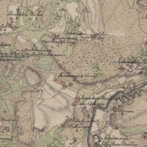 Kalwen (Kr.Memel), 1540 Bartell Jackusch, 1687 Martin Jagksch, 1785 Callwen, Calwen, Kallwen (Kr.Memel) oder Jagschen Mertin und Jagschen Martin, Kreis Memel, Ostpreußen.