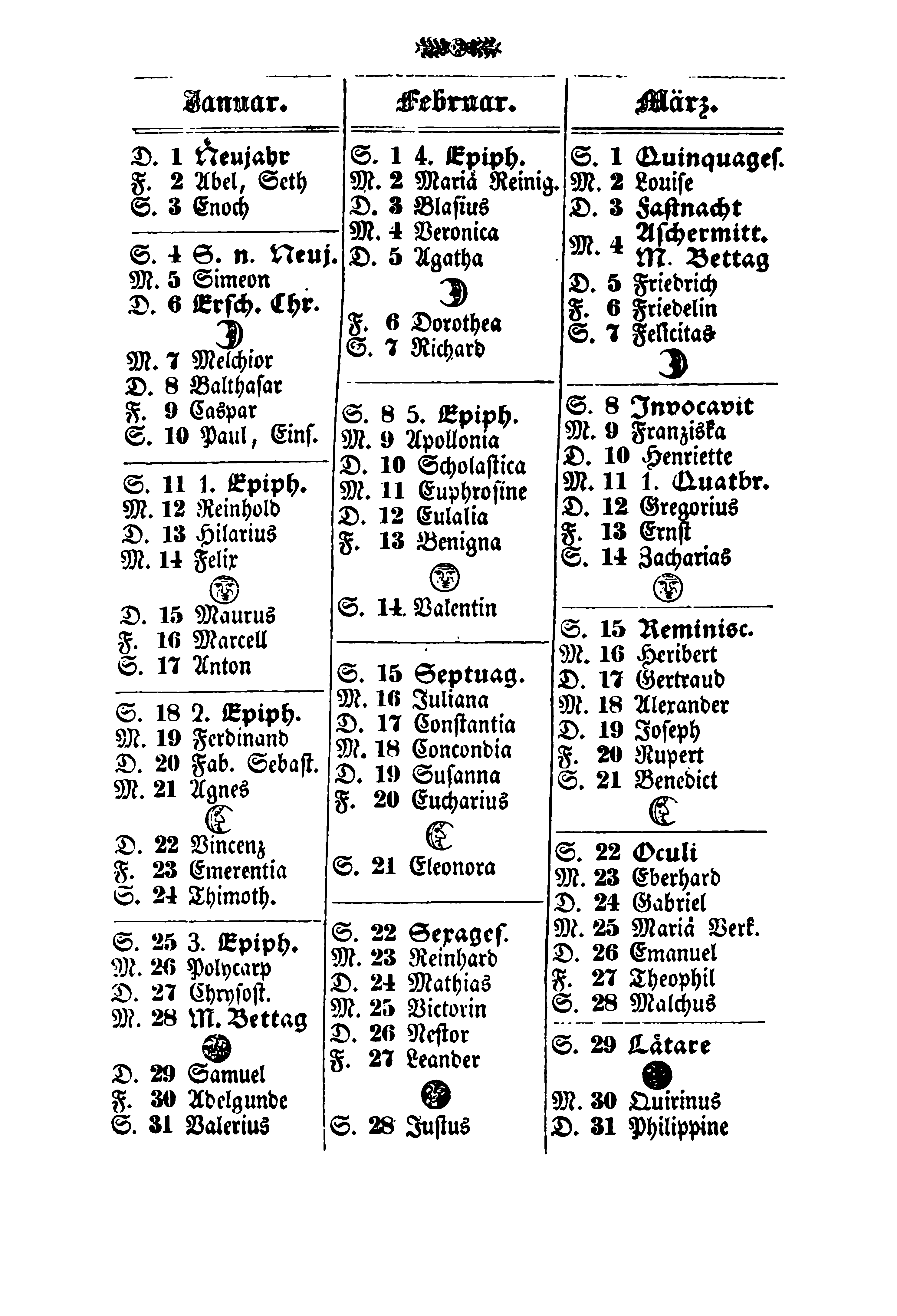 Kurhessen/Staatshandbuch 1835/Kalender 1
