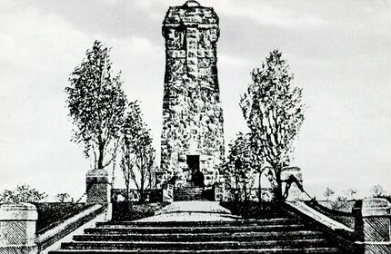Angeregt wurde der Bau dieses Bismarckturmes als Aussichtsturm mit Feuerschale von Oberpräsidialrat Graf von Lambsdorff (früherer Landrat des Kreises). Der Bau eines Bismarckturmes wurde bereits schon am 23.09.1899 geplant.