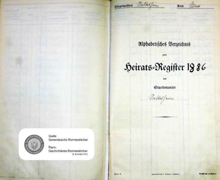 "Standesamtregister aus dem Gemeindearchiv Rommerskirchen"