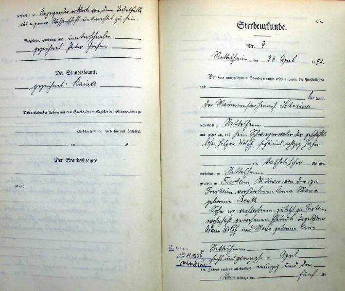 | aktuell | 16:10, 18. Mär. 2012 | 1.158 × 1.701, 49 Seiten (8,39 MB) | KlausErdmann (Diskussion • Beiträge) | {{Information |Beschreibung = ;Standesamt Nettesheim, Sterbe-Register von 1893 |Quelle = Gemeindearchiv Rommerskirchen |Urheber = |Datum = 1893 |Scans = Klaus Erdmann ''(Repro: 16.März 2012)'' |