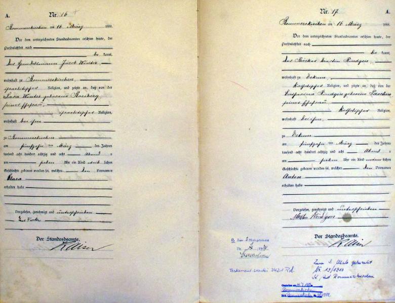 "Standesamtregister aus dem Gemeindearchiv Rommerskirchen"
