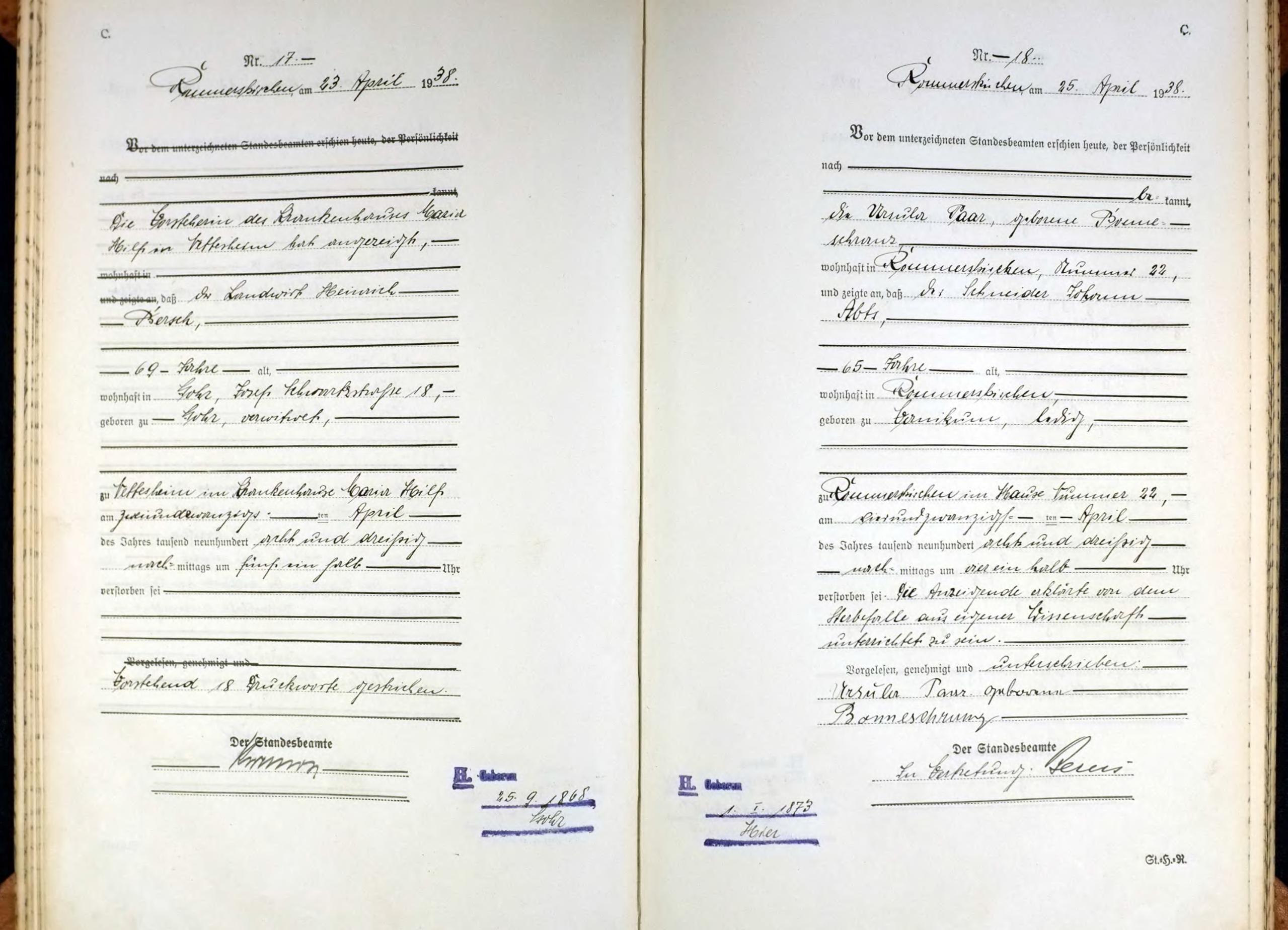 | aktuell | 15:56, 15. Mai 2013 | 1.633 × 2.336, 19 Seiten (5,34 MB) | KlausErdmann (Diskussion • Beiträge) | {{Information |Beschreibung = ;Standesamt Rommerskirchen, Sterberegister von 1938 - Band 1 (Nr. 1-30) |Quelle = Archiv im Rhein-Kreis Neuss |Urheber = |Datum = 1938 |Scans = [[User:KlausErdmann|Klaus Erdm |