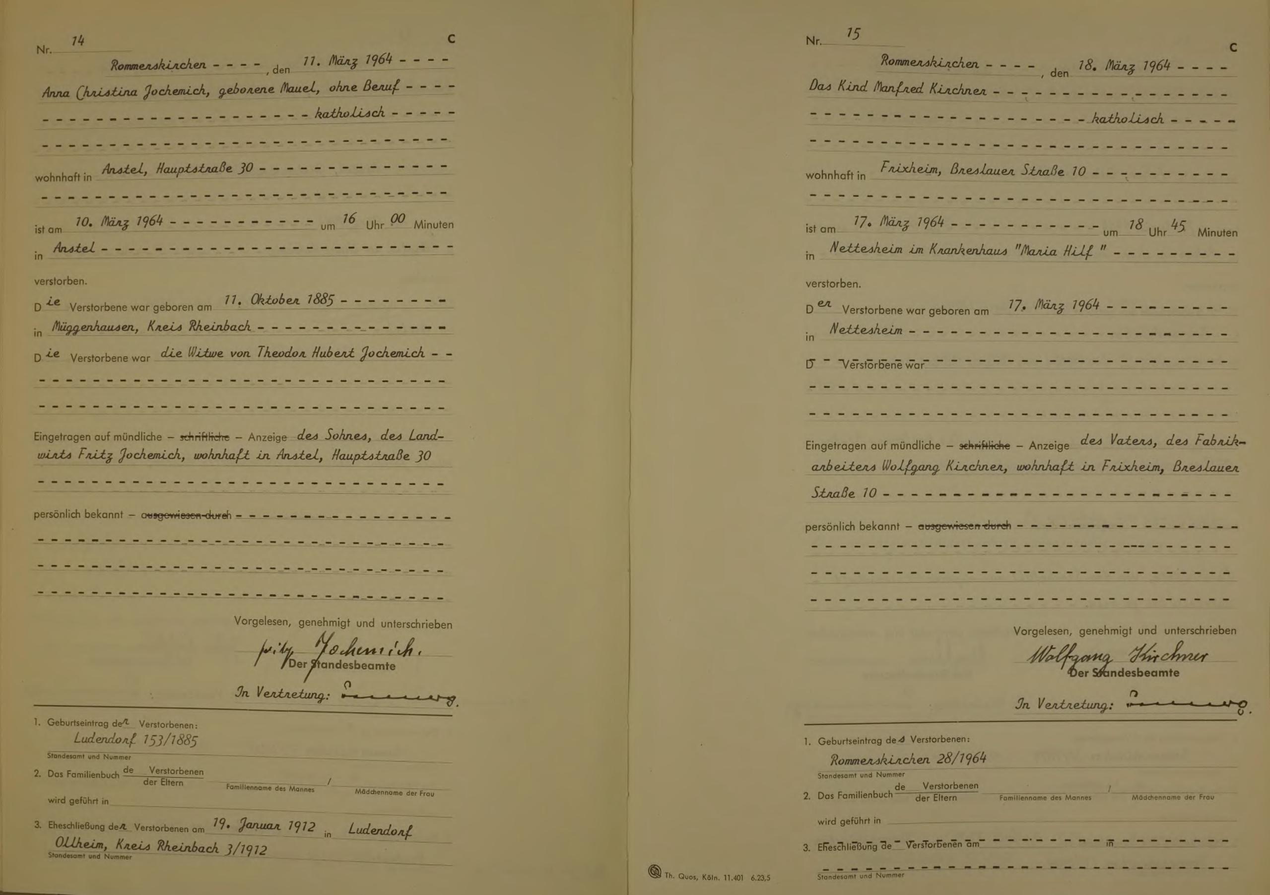 "Standesamtregister aus dem Gemeindearchiv Rommerskirchen"