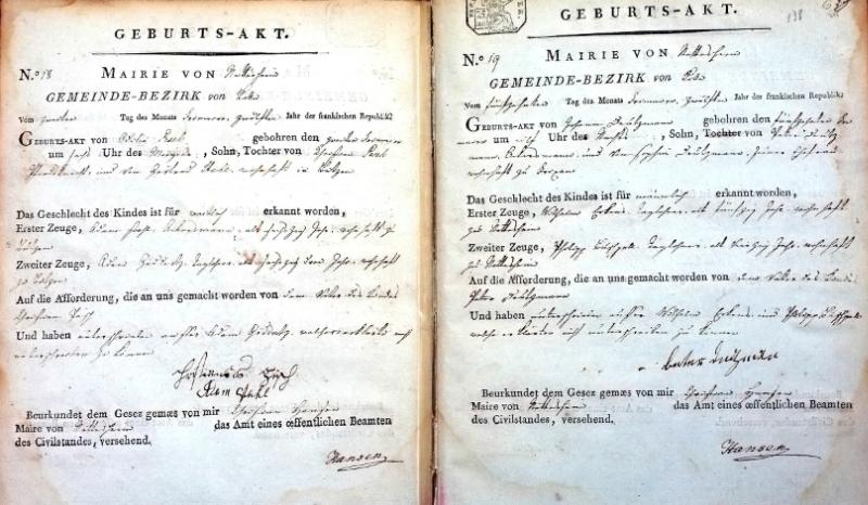 | aktuell | 08:34, 24. Aug. 2011 | 2.197 × 1.538, 40 Seiten (17,98 MB) | KlausErdmann (Diskussion • Beiträge) | {{Information |Beschreibung = ;Standesamt Nettesheim, Geburts-Register 1804:XII. Jahr der französischen Republik |Quelle = Gemeindearchiv Rommerskirchen |Urheber = |Datum = XII. Jahr der französischen Republik |Sc |