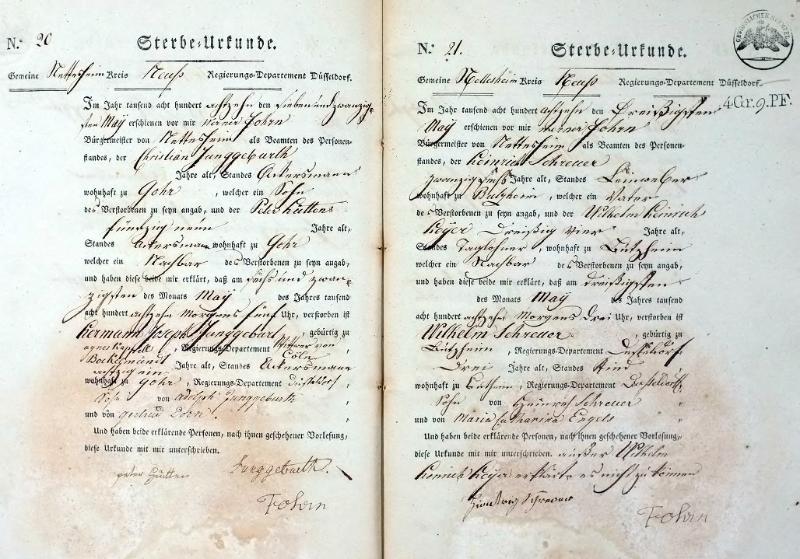 Standesamt Nettesheim, Sterbeurkunden von 1818