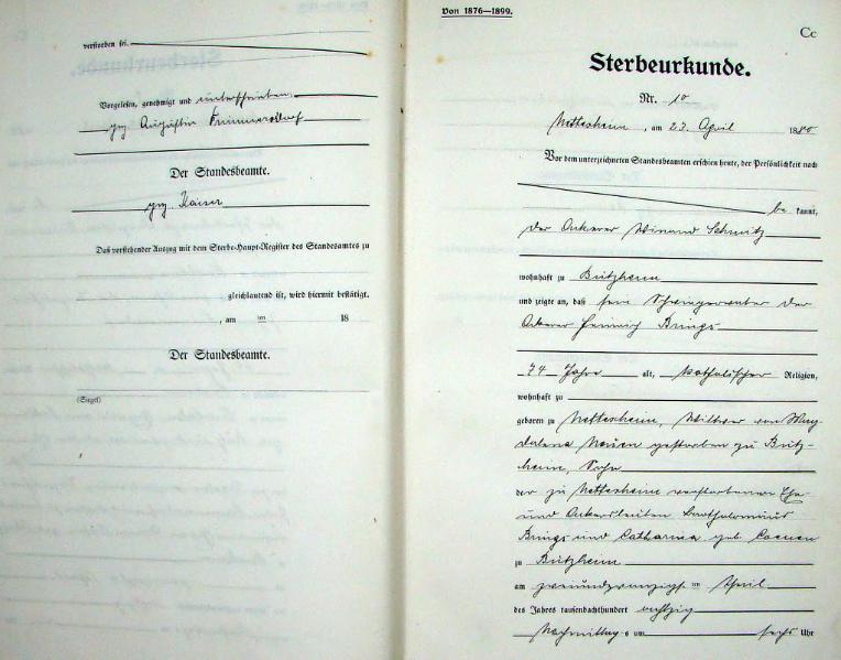 | aktuell | 19:47, 8. Mär. 2012 | 1.225 × 1.797, 49 Seiten (8,18 MB) | KlausErdmann (Diskussion • Beiträge) | {{Information |Beschreibung = ;Bürgermeisterei Nettesheim, Sterbe-Register von 1880 |Quelle = Gemeindearchiv Rommerskirchen |Urheber = |Datum = 1880 |Scans = Klaus Erdmann ''(Reproduktion: (8. |