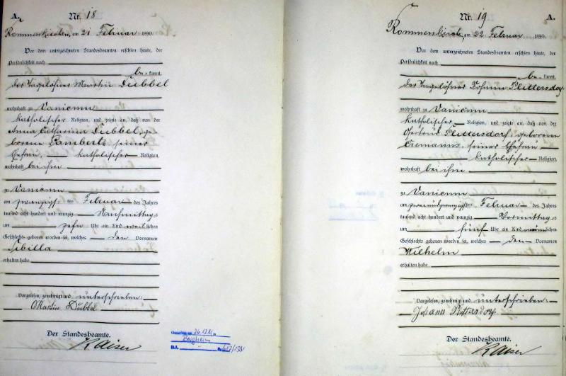Bürgermeisterei Rommerskirchen, Register der Geburts-Urkunden für das Jahr 1890