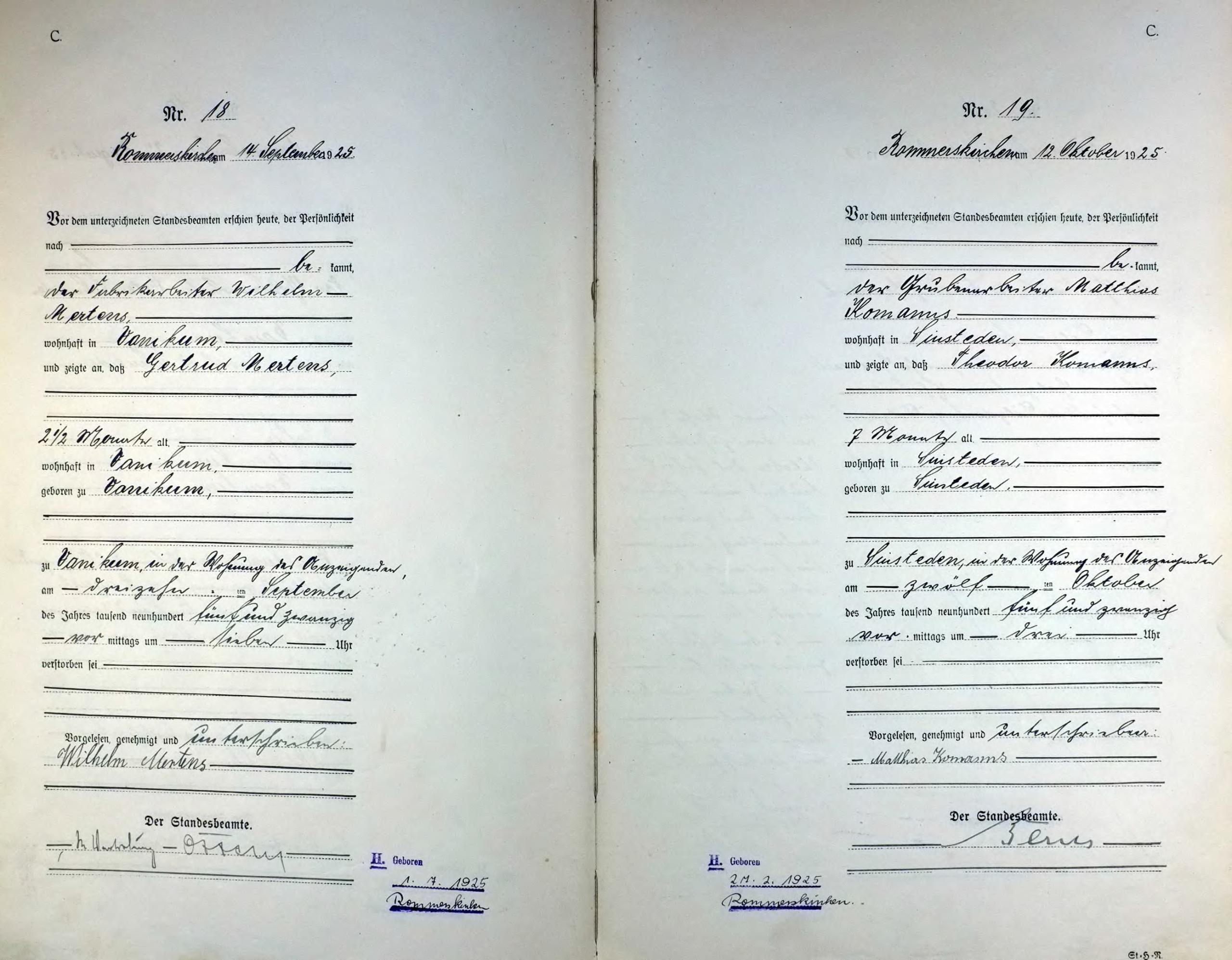 "Standesamtregister aus dem Gemeindearchiv Rommerskirchen"