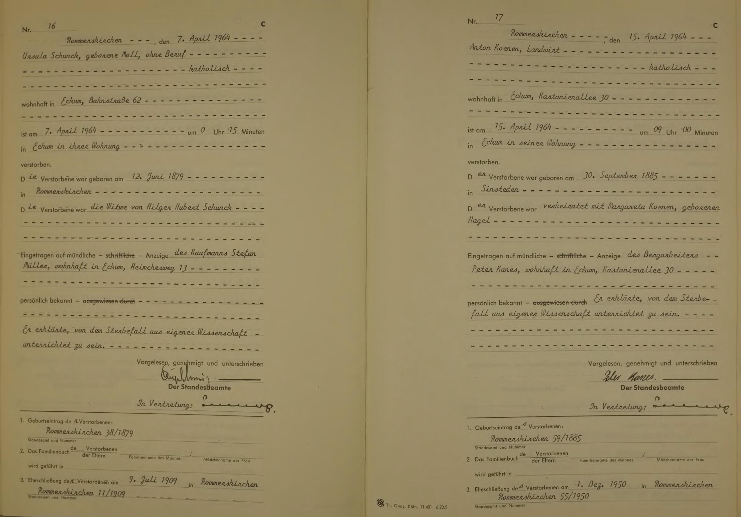"Standesamtregister aus dem Gemeindearchiv Rommerskirchen"