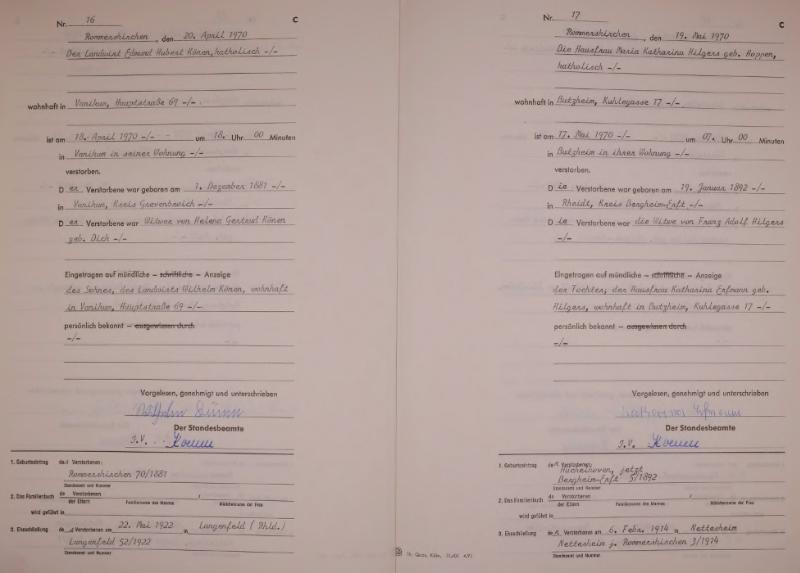 "Standesamtregister aus dem Gemeindearchiv Rommerskirchen"