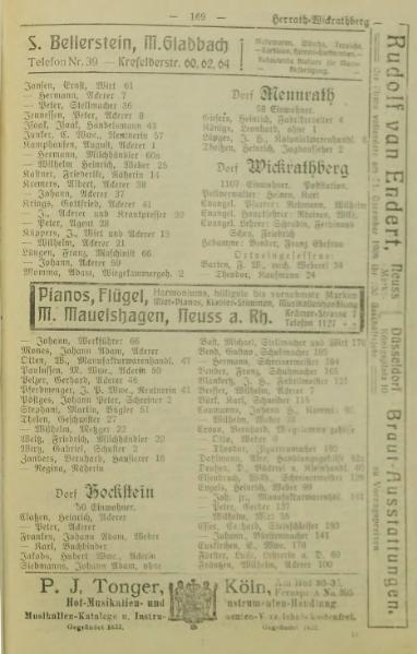 | aktuell | 16:55, 10. Mär. 2017 | 1.400 × 2.096, 13 Seiten (3,39 MB) | KlausErdmann (Diskussion • Beiträge) | {{Information |Beschreibung =;Adressbuch der Bürgermeisterei Wickrath im [http://wiki-de.genealogy.net/Kreis_Grevenbroich/Adressbuch_1912 Grevenbroicher Kreisadreßbuch von 1912] |Quelle = [[:de:Stadtarchiv Grevenbroich|Stadtarchiv |