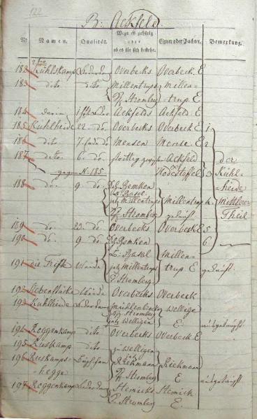 | aktuell | 16:19, 25. Okt. 2009 | 2.049 × 3.336, 39 Seiten (4,85 MB) | KlausErdmann (Diskussion • Beiträge) | {{Information |Beschreibung = Grundkataster der Gemeinde Wadersloh von 1821<br />'''Akte A436a, Nr. III Grund-Kataster der Bauerschaft Ackfeld''' |Quelle = Kreisarchiv Warendorf |Urheber = |