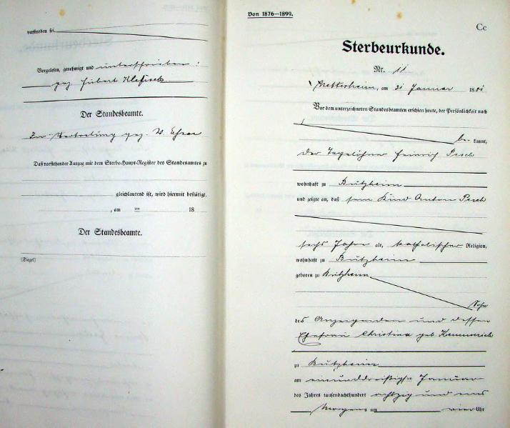 | aktuell | 10:08, 9. Mär. 2012 | 1.225 × 1.797, 65 Seiten (11,02 MB) | KlausErdmann (Diskussion • Beiträge) | {{Information |Beschreibung = ;Bürgermeisterei Nettesheim, Sterbe-Register von 1881 |Quelle = Gemeindearchiv Rommerskirchen |Urheber = |Datum = 1881 |Scans = Klaus Erdmann ''(Reproduktion: (8. |