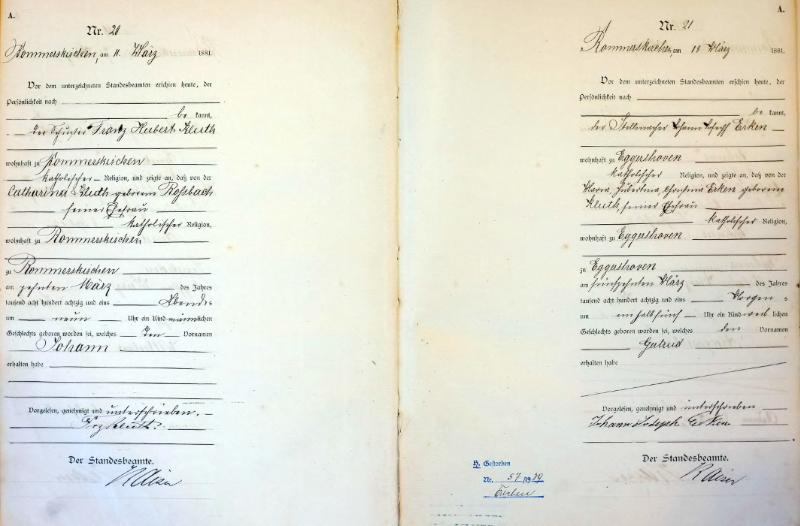 "Standesamtregister aus dem Gemeindearchiv Rommerskirchen"