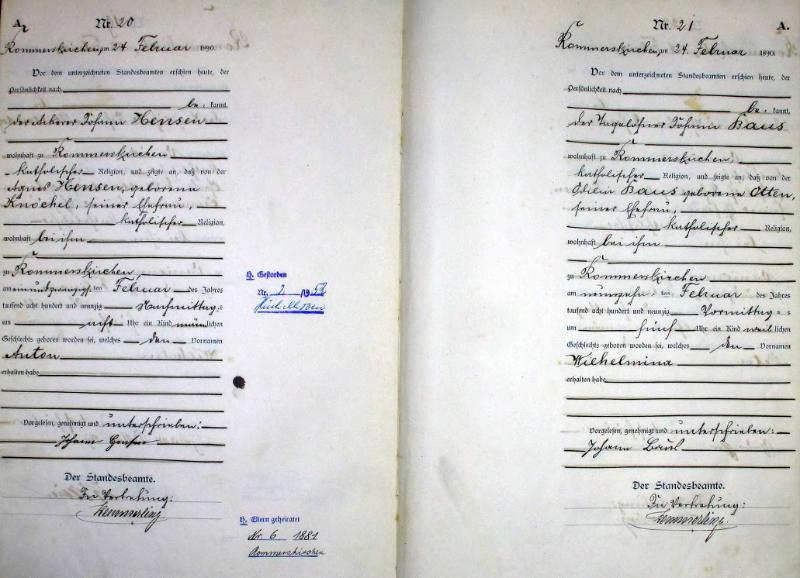 "Standesamtregister aus dem Gemeindearchiv Rommerskirchen"