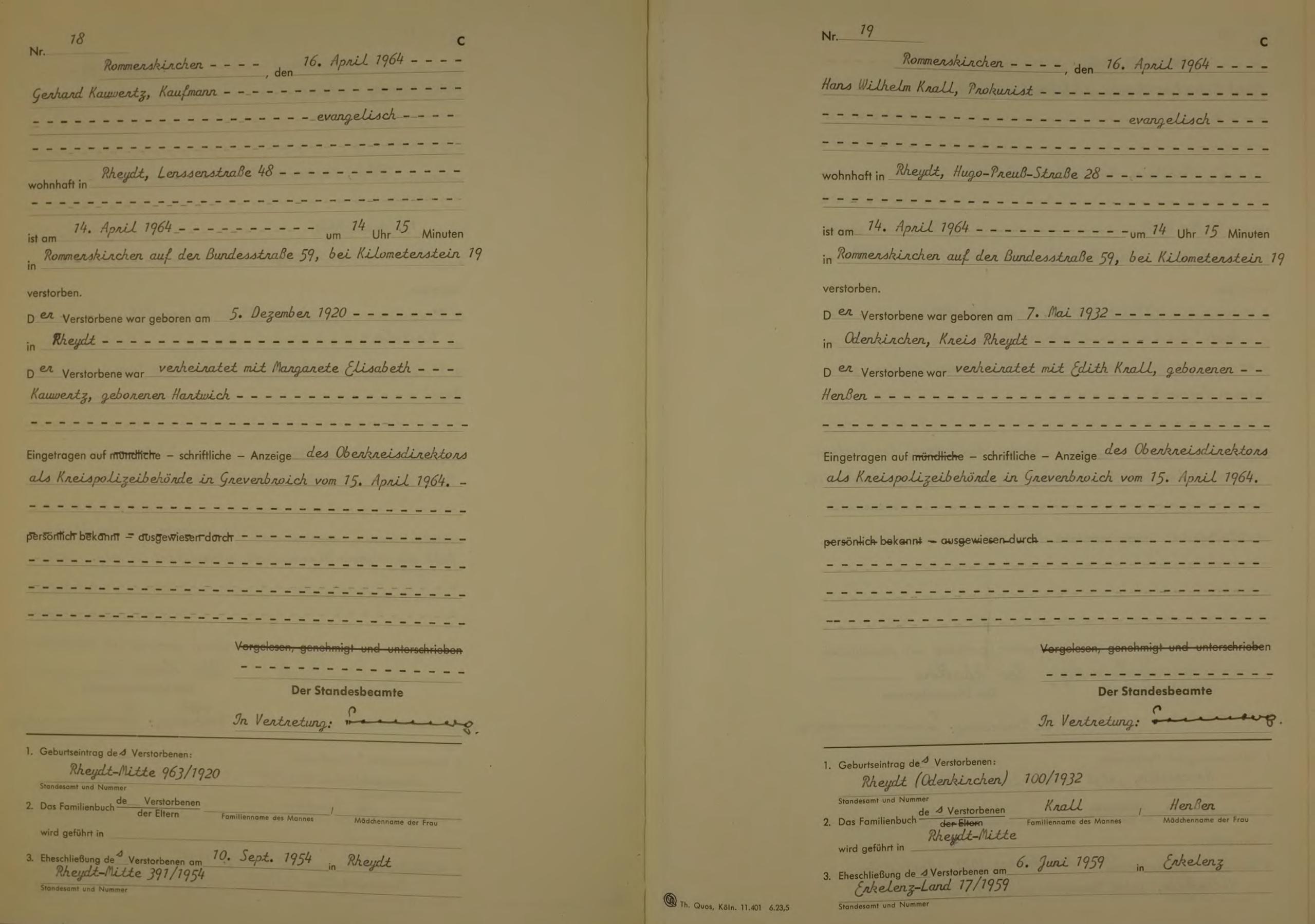 "Standesamtregister aus dem Gemeindearchiv Rommerskirchen"