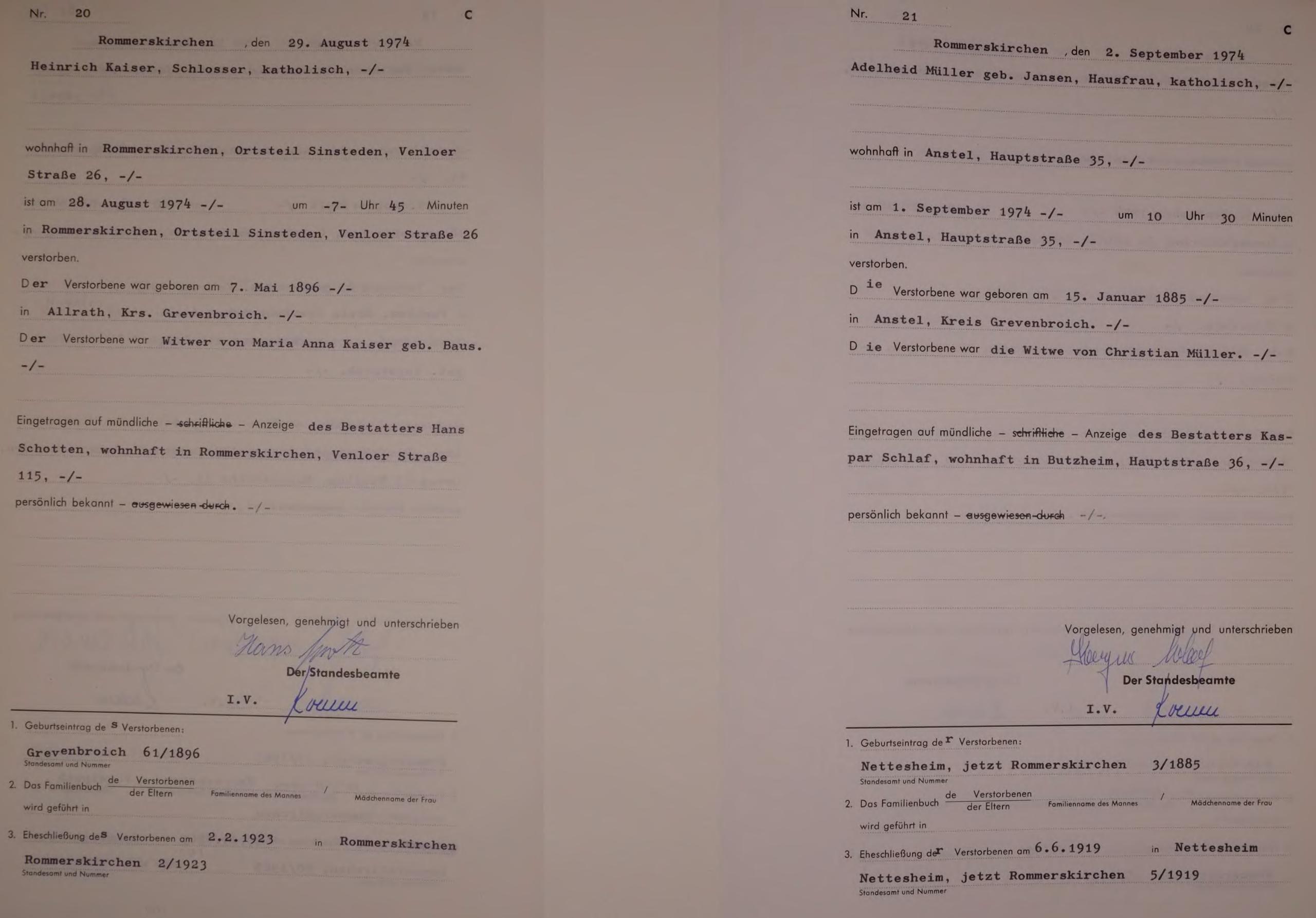 "Standesamtregister aus dem Gemeindearchiv Rommerskirchen"