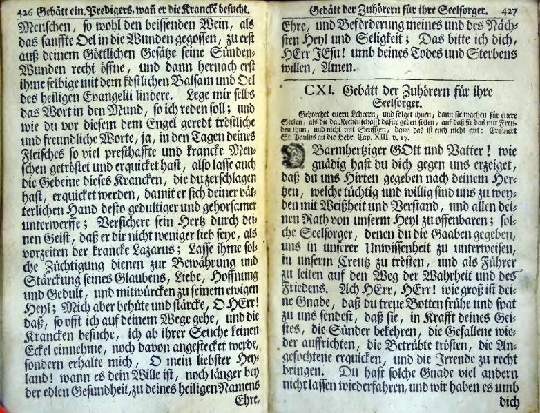 Neu eröffneter himmlischer Weyhrauch-Schatz oder vollständiges Gebätt-Buch. Auf allerhand Zeiten, Anliegen und Personen gerichtet; dabey ein genugsamer Unterricht vom Gebrauch des Heil. Abendmahls, Besuchungen der Krancken, und Zubereitung der zum Tode verurtheilten Personen, etc. samt behörigen Gebätten: Auß den aller-berühmtesten Englisch- und Französischen Theologis übersetzt und zusammen gezogen durch Johannem Zollikoffern, weiland Cammerern und Pfarrern der Christlichen Gemeinde zu Herisau. | |||