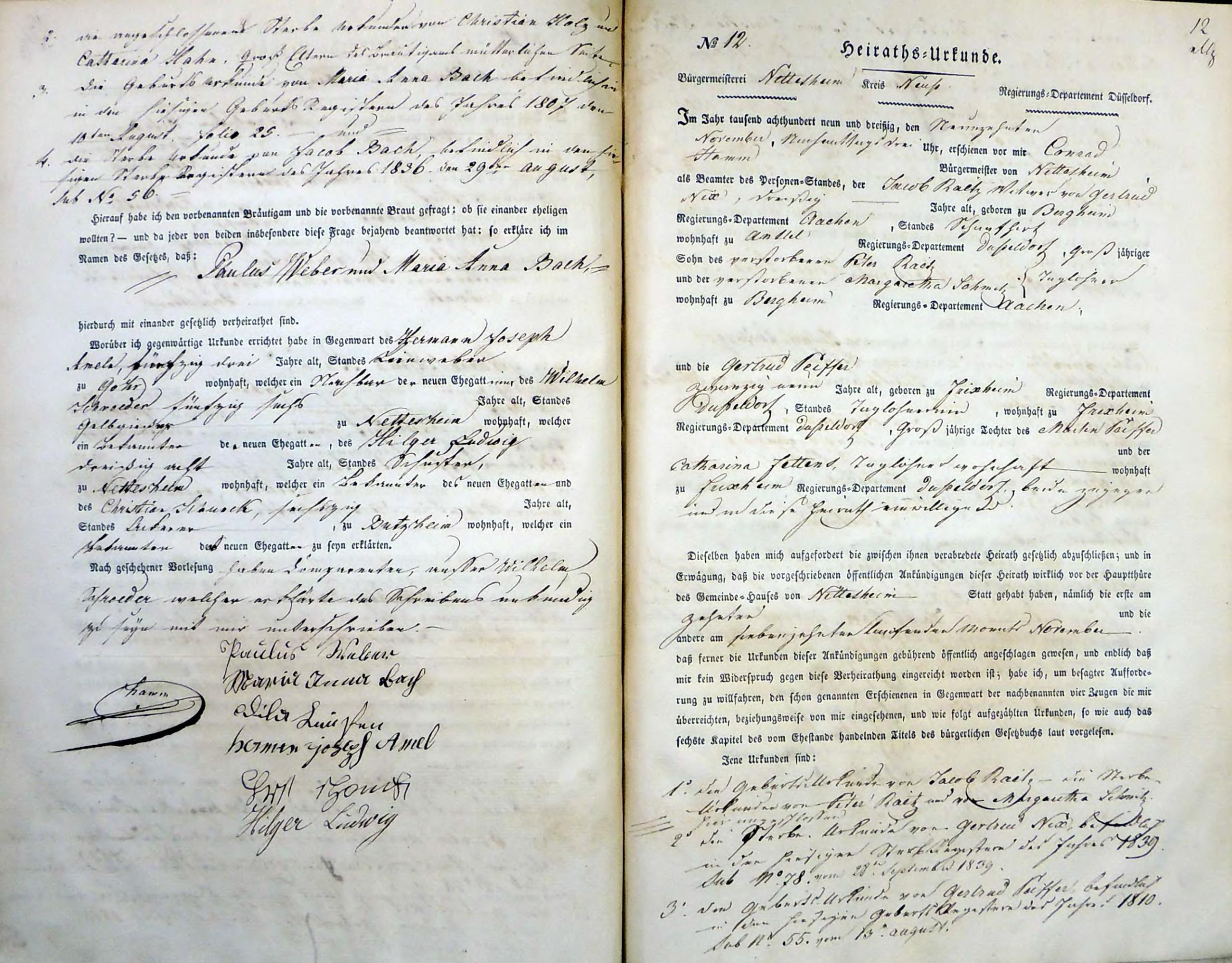 | aktuell | 12:20, 25. Okt. 2012 | 1.617 × 2.145, 16 Seiten (7,56 MB) | KlausErdmann (Diskussion • Beiträge) | {{Information |Beschreibung = ;Standesamt Nettesheim, Heiratsregister von 1839 |Quelle = Gemeindearchiv Rommerskirchen |Urheber = |Datum = 1839 |Scans = Klaus Erdmann ''(Repr |