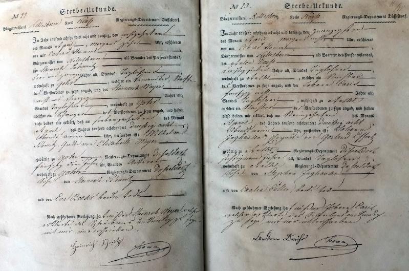 Bürgermeisterei Nettesheim, Register der Sterbe-Urkunden von 1838