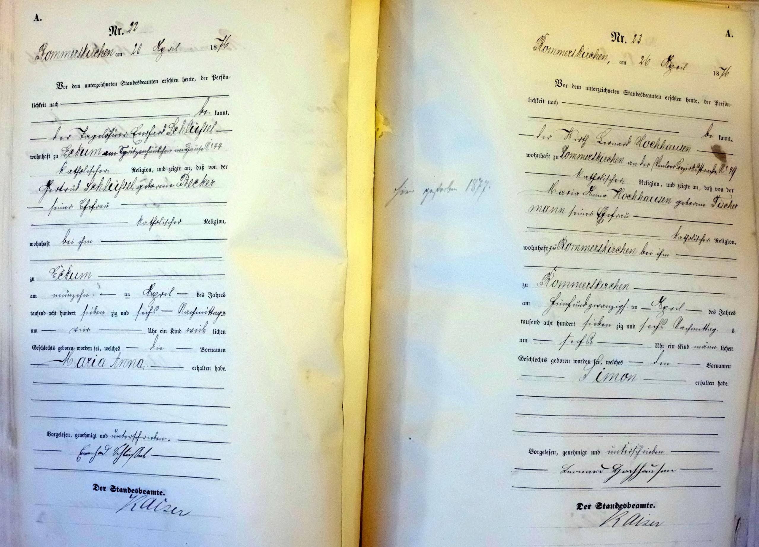 "Standesamtregister aus dem Gemeindearchiv Rommerskirchen"
