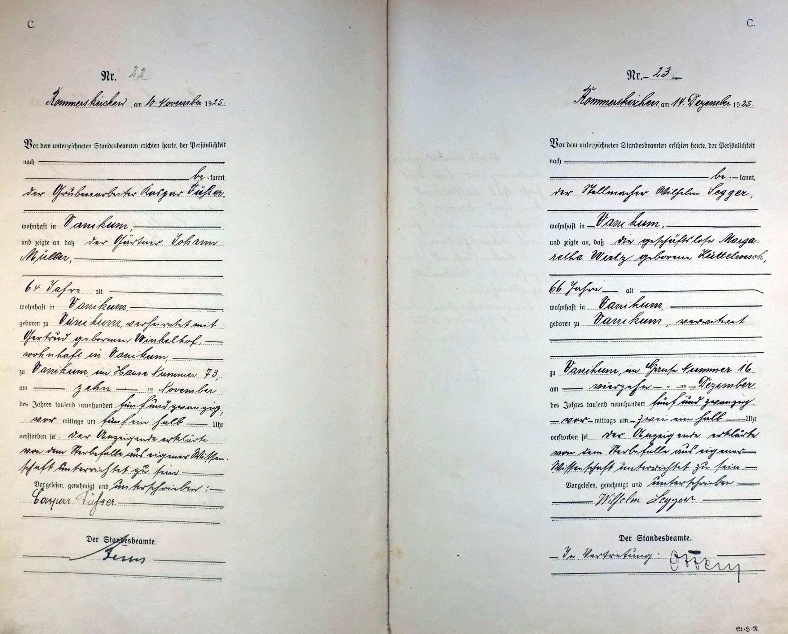 | aktuell | 18:51, 8. Mai 2013 | 1.625 × 2.165, 16 Seiten (4,48 MB) | KlausErdmann (Diskussion • Beiträge) | {{Information |Beschreibung = ;Standesamt Rommerskirchen, Sterberegister von 1925 |Quelle = Archiv im Rhein-Kreis Neuss |Urheber = |Datum = 1925 |Scans = Klaus Erdmann ''(Repro: 7. M |