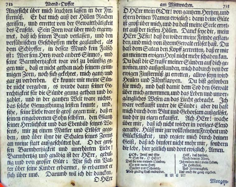 Neu eröffneter himmlischer Weyhrauch-Schatz oder vollständiges Gebätt-Buch. Auf allerhand Zeiten, Anliegen und Personen gerichtet; dabey ein genugsamer Unterricht vom Gebrauch des Heil. Abendmahls, Besuchungen der Krancken, und Zubereitung der zum Tode verurtheilten Personen, etc. samt behörigen Gebätten: Auß den aller-berühmtesten Englisch- und Französischen Theologis übersetzt und zusammen gezogen durch Johannem Zollikoffern, weiland Cammerern und Pfarrern der Christlichen Gemeinde zu Herisau. | |||