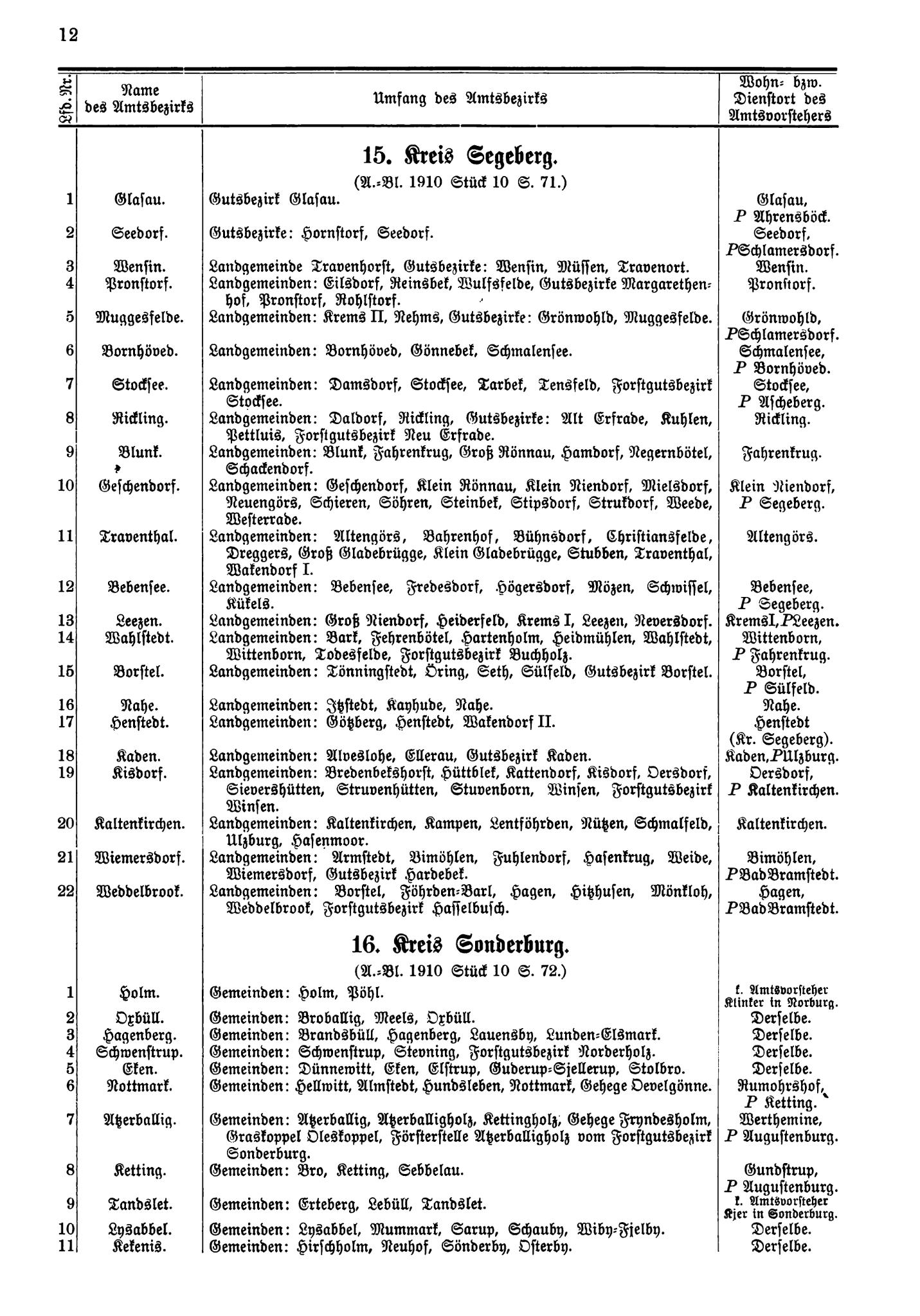 Verzeichnis der Amtsbezirke … der Provinz Schleswig-Holstein | ||