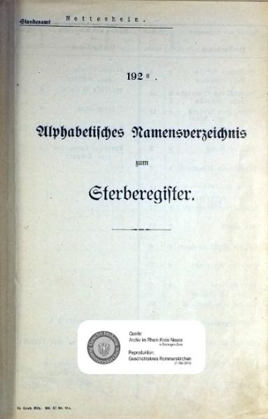 "Standesamtregister aus dem Gemeindearchiv Rommerskirchen"