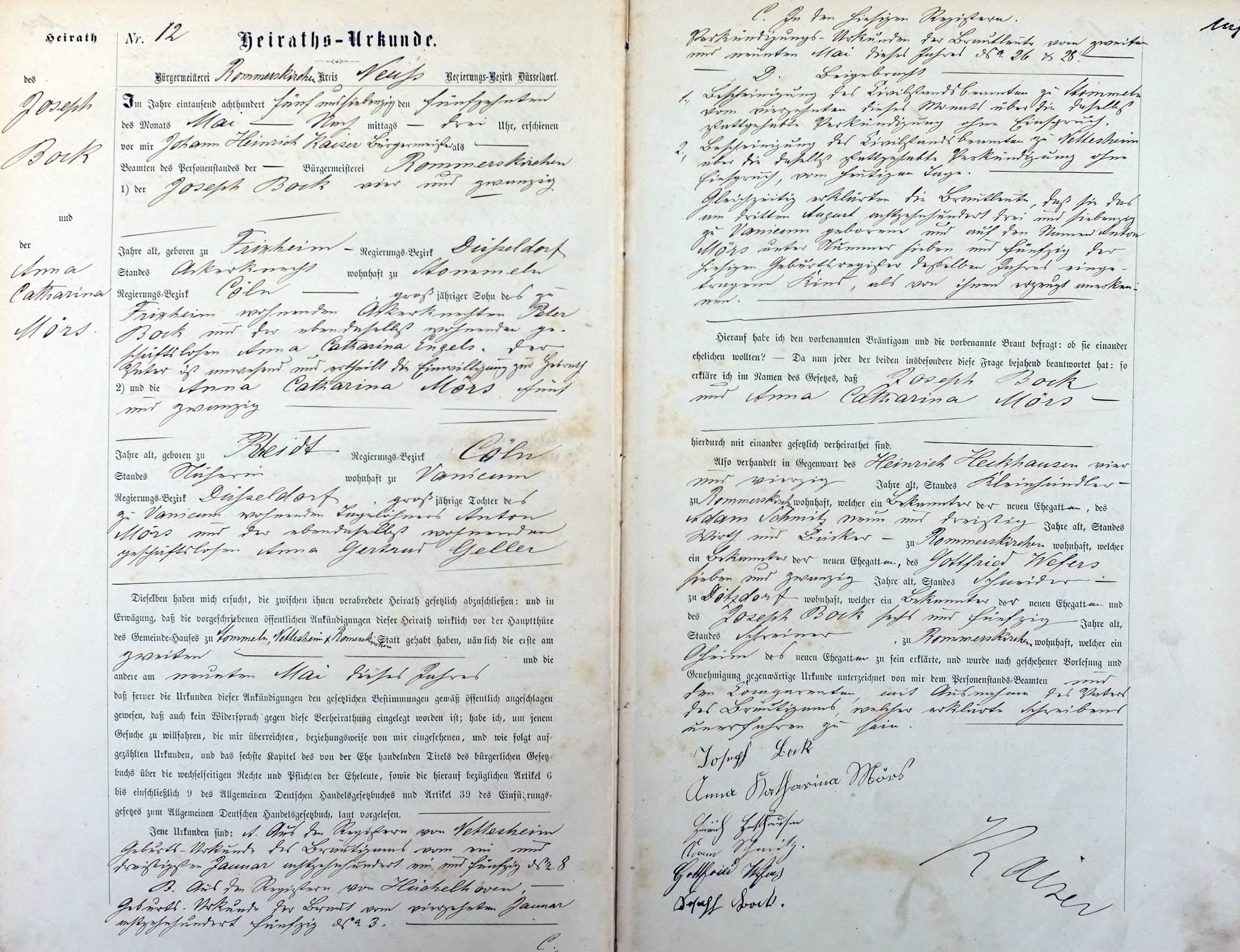 "Standesamtregister aus dem Gemeindearchiv Rommerskirchen"
