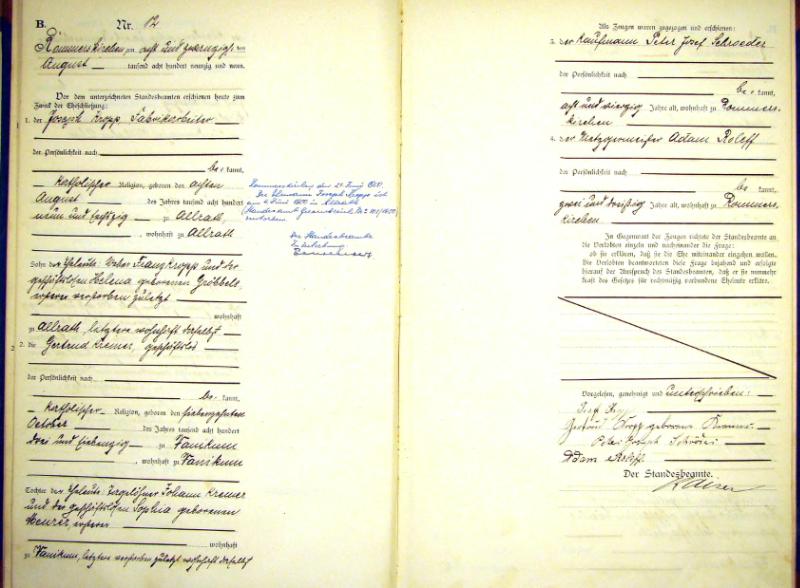 | aktuell | 22:40, 8. Dez. 2011 | 1.261 × 1.939, 19 Seiten (5,51 MB) | KlausErdmann (Diskussion • Beiträge) | {{Information |Beschreibung = ;Standesamtsbezirk Rommerskirchen, Register der Heirats-Urkunden pro 1899 |Quelle = Gemeindearchiv Rommerskirchen |Urheber = |Datum = 1899 |Scans = Klaus Erdmann ' |