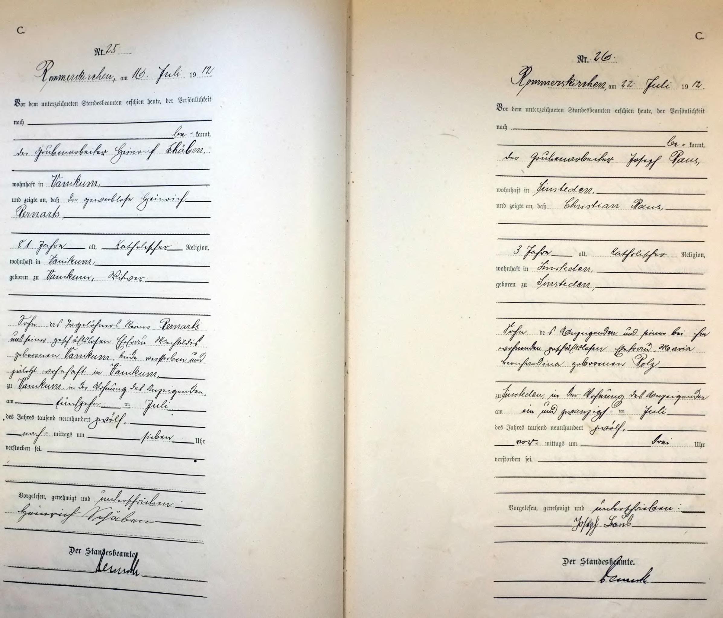 "Standesamtregister aus dem Gemeindearchiv Rommerskirchen"