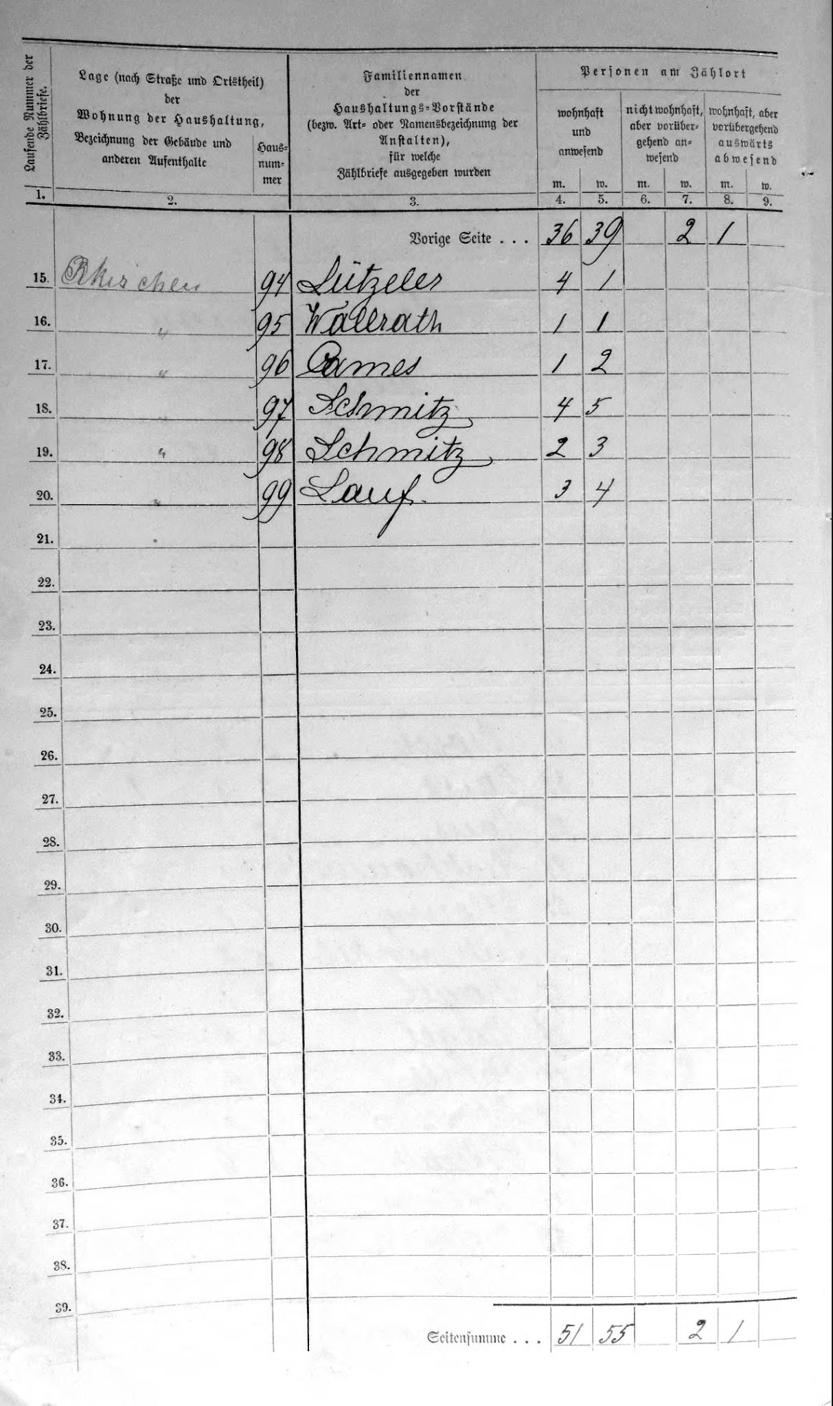 Controllisten der preußischen Volkszählung von 1880 für Rommerskirchen