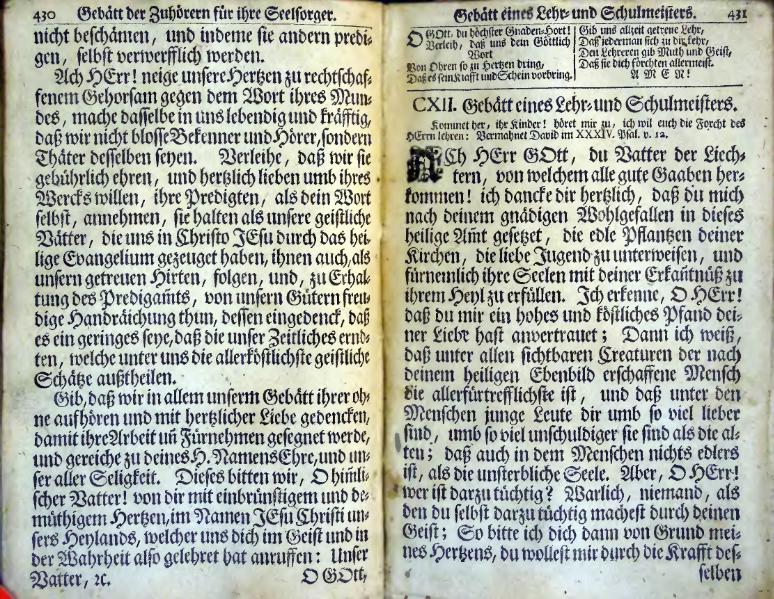 Neu eröffneter himmlischer Weyhrauch-Schatz oder vollständiges Gebätt-Buch. Auf allerhand Zeiten, Anliegen und Personen gerichtet; dabey ein genugsamer Unterricht vom Gebrauch des Heil. Abendmahls, Besuchungen der Krancken, und Zubereitung der zum Tode verurtheilten Personen, etc. samt behörigen Gebätten: Auß den aller-berühmtesten Englisch- und Französischen Theologis übersetzt und zusammen gezogen durch Johannem Zollikoffern, weiland Cammerern und Pfarrern der Christlichen Gemeinde zu Herisau. | |||
