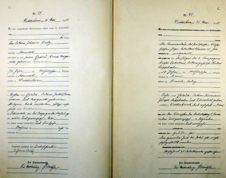 "Standesamtregister aus dem Gemeindearchiv Rommerskirchen"