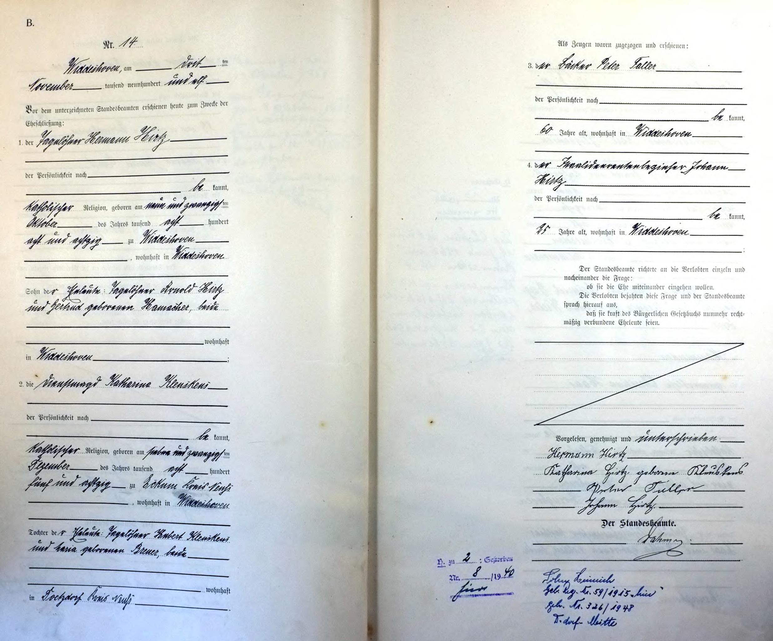 | aktuell | 14:37, 28. Feb. 2013 | 1.581 × 2.365, 21 Seiten (6,67 MB) | KlausErdmann (Diskussion • Beiträge) | {{Information |Beschreibung = ;Standesamt Evinghoven, Heiratsregister 1911 |Quelle = Archiv im Rhein-Kreis Neuss |Urheber = |Datum = 1911 |Scans = Klaus Erdmann ''(Repro: 28. Februar 2013)'' |Genehmigung = |