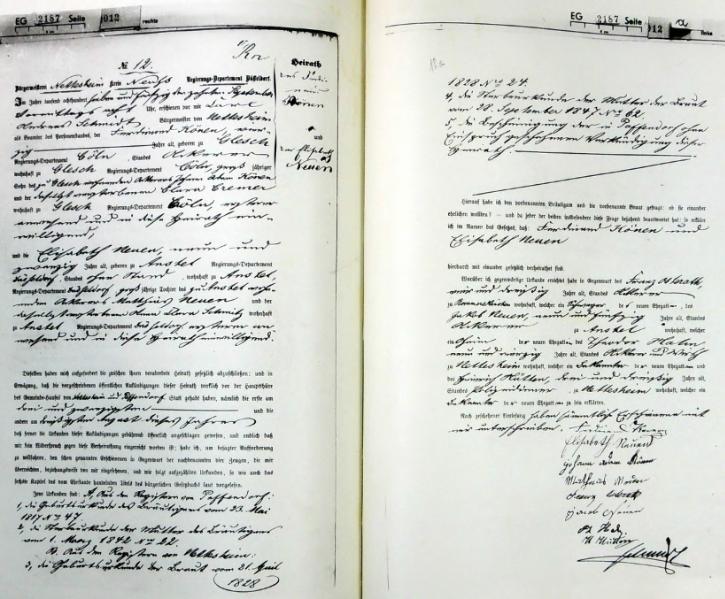 | aktuell | 08:18, 5. Nov. 2012 | 1.574 × 2.264, 19 Seiten (5,82 MB) | KlausErdmann (Diskussion • Beiträge) | {{Information |Beschreibung = ;Standesamt Nettesheim, Heiratsregister von 1857 |Quelle = Gemeindearchiv Rommerskirchen |Urheber = |Datum = 1857 |Scans = Klaus Erdmann ''(Repr |