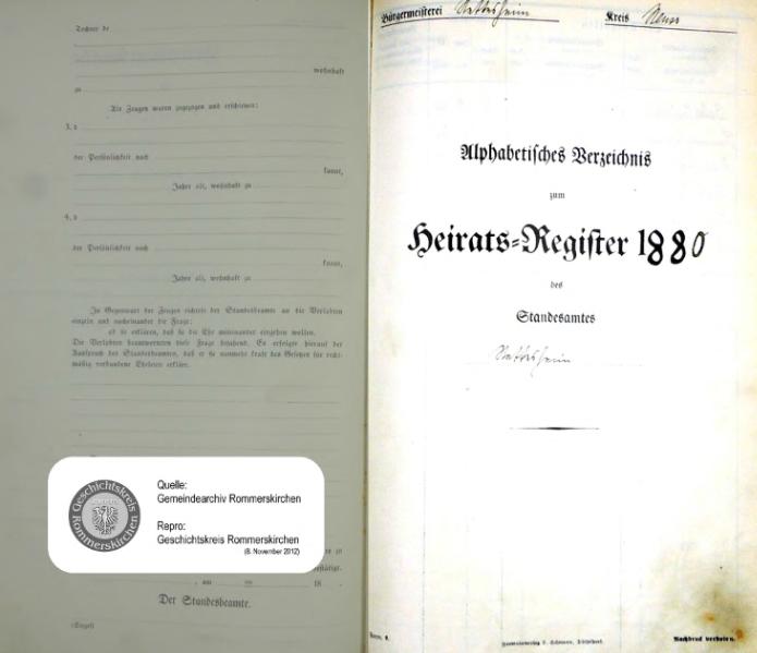 "Standesamtregister aus dem Gemeindearchiv Rommerskirchen"