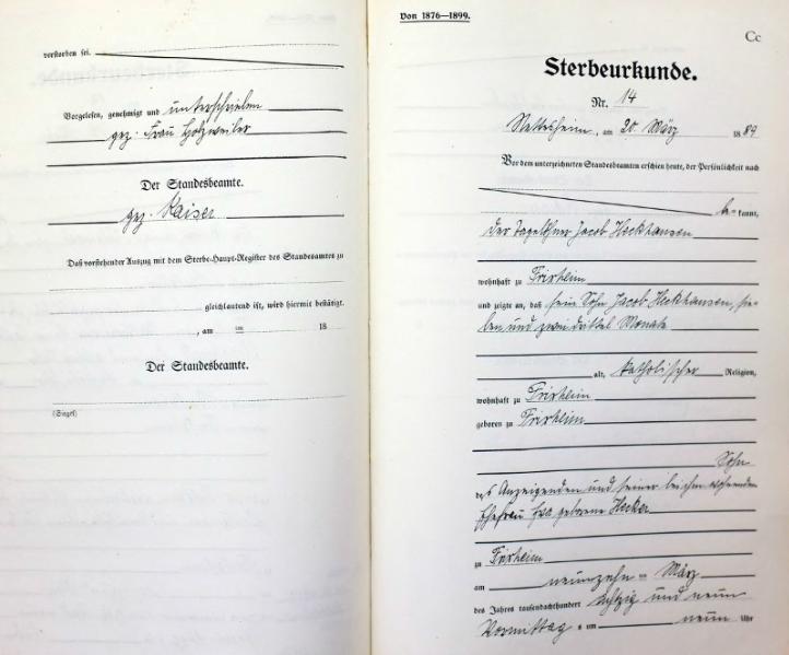 | aktuell | 13:21, 11. Mär. 2012 | 1.225 × 1.797, 51 Seiten (10,65 MB) | KlausErdmann (Diskussion • Beiträge) | {{Information |Beschreibung = ;Bürgermeisterei Nettesheim, Sterbe-Register von 1889 |Quelle = Gemeindearchiv Rommerskirchen |Urheber = |Datum = 1889 |Scans = Klaus Erdmann ''(Reproduktion: (8. |