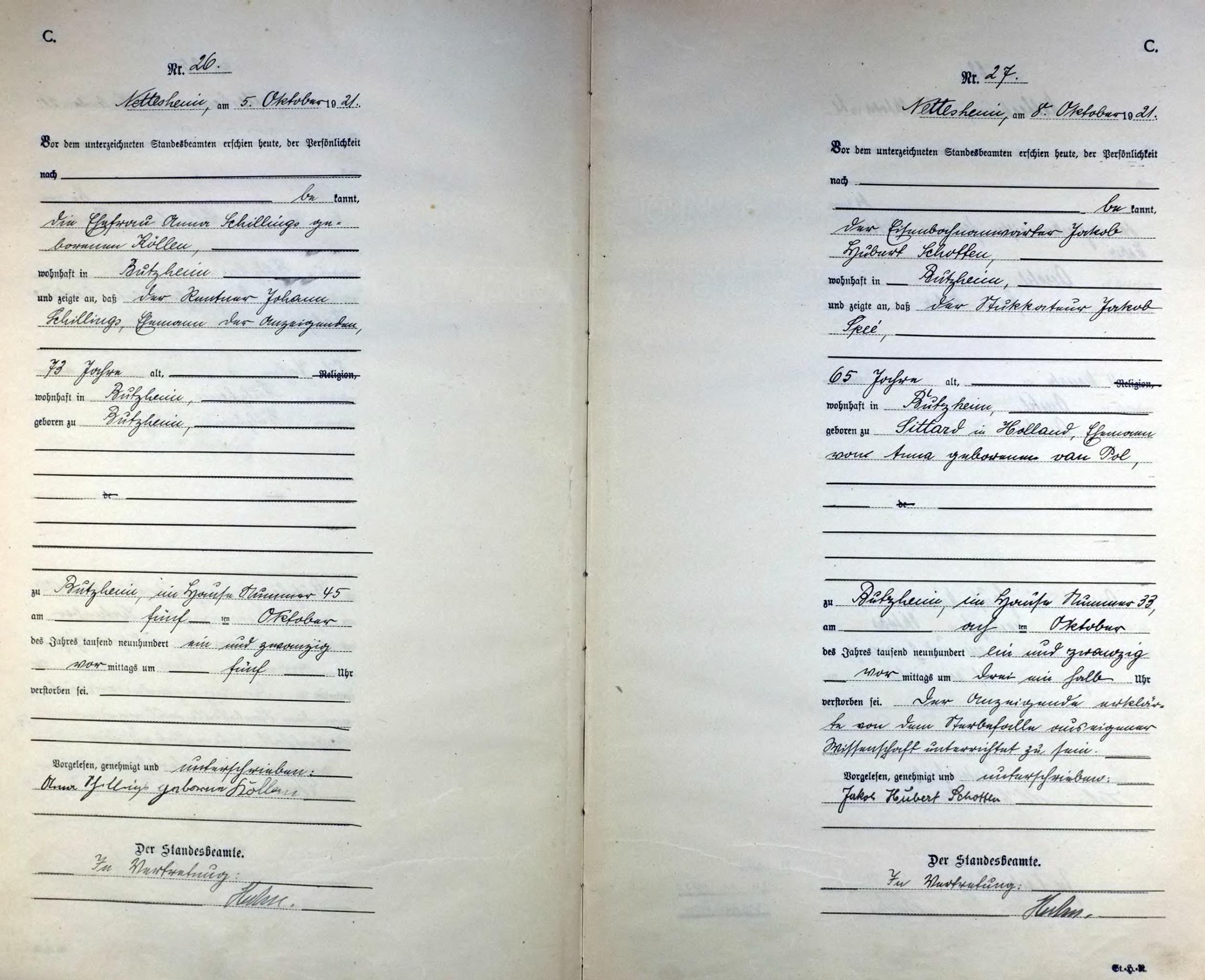 "Standesamtregister aus dem Gemeindearchiv Rommerskirchen"