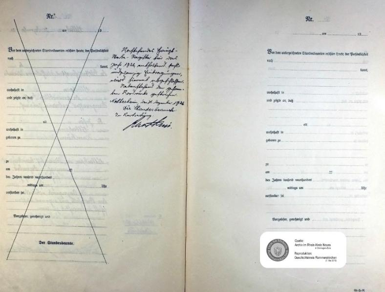 "Standesamtregister aus dem Gemeindearchiv Rommerskirchen"